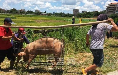 事故發(fā)生后,豬場(chǎng)老板叫來了另一輛貨車轉(zhuǎn)運(yùn)生豬。要將一頭一兩百斤重的生豬重新裝運(yùn)上車并不容易,這些受到了驚嚇的生豬顯得很不配合,需要兩三個(gè)人連拉帶拽才能把生豬趕進(jìn)籠子里裝運(yùn)上車。眾人用了兩個(gè)多小時(shí)才將生豬全部運(yùn)走。
