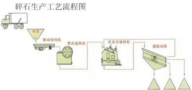 原料輸送---機制砂及篩分---配料---混合及包裝機制砂生產(chǎn)工藝流程