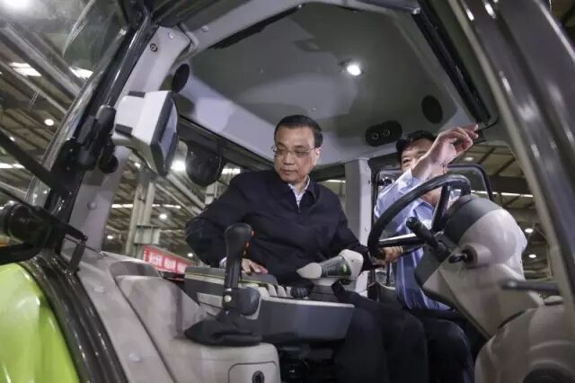 李克強總理登上“一人高的輪子、深耕可達半米”的中聯(lián)重科大馬力拖拉機