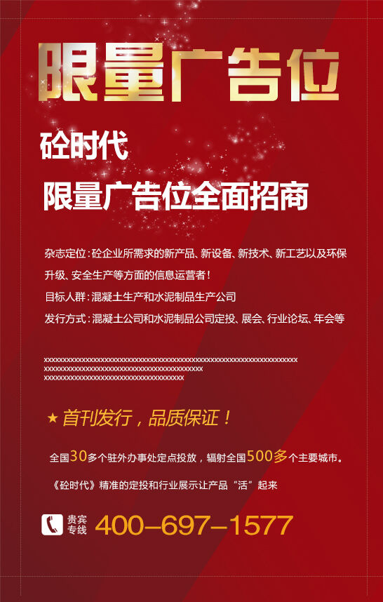 現(xiàn)《砼時(shí)代》,廣告位火熱招商中,我們誠(chéng)摯邀請(qǐng)你的參與!