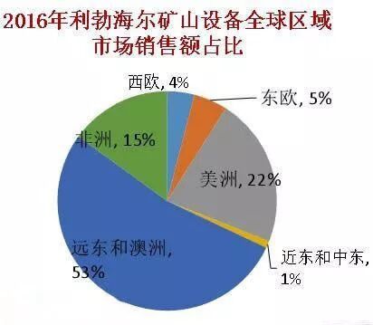 利勃海爾礦山設(shè)備產(chǎn)品線,澳洲和遠(yuǎn)東市場(chǎng)銷(xiāo)售額占比高達(dá)53%,西歐只有4%。