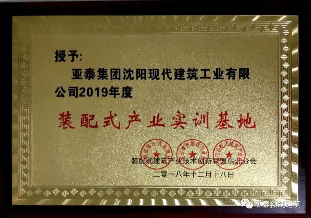 亞泰集團(tuán)沈陽(yáng)現(xiàn)代建筑工業(yè)有限公司被授予2019年度裝配式產(chǎn)業(yè)實(shí)訓(xùn)基地