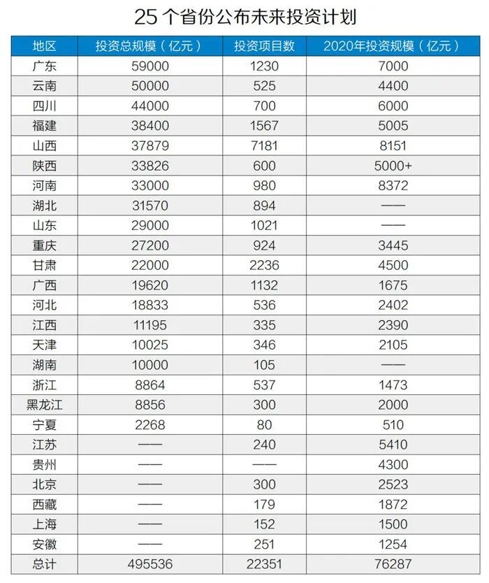 非常時刻,多省份密集公布了2020年重大項目投資計劃。