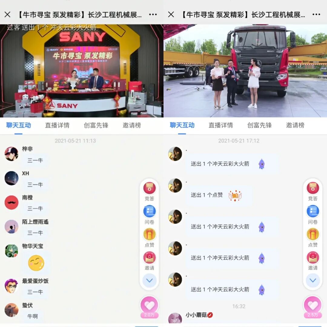 來自三一重工的產(chǎn)品研發(fā)經(jīng)理為觀眾詳細(xì)介紹了泵送、路機(jī)王牌產(chǎn)品,通過尋寶的方式,趣味多多,令觀眾大呼過癮。更有多輪紅包雨、知識(shí)搶答等互動(dòng)環(huán)節(jié)為大家送上泵車模型、遙控?cái)嚢柢嚹P偷群枚Y。