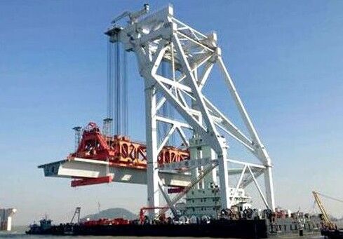 在大橋建設(shè)現(xiàn)場,記者看到,遼闊的海面,海天輝映的地方,三一紅顯得格外耀眼,不遠(yuǎn)處的三一設(shè)備正“辛勤工作”。