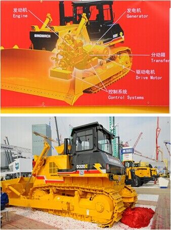 電傳動(dòng)大型礦車在大型礦山并不鮮見(jiàn),但履帶式推土機(jī)采用電傳動(dòng)型式,在國(guó)內(nèi)尚屬首次,國(guó)機(jī)重工在bauma2014推出了D320E電傳動(dòng)履帶式推土機(jī)。