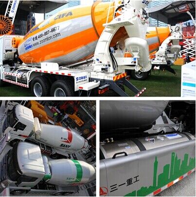 中聯(lián)重科與三一重工在bauma2014展示的天然氣攪拌車,配置450L氣瓶,綜合行駛里程在400km左右。