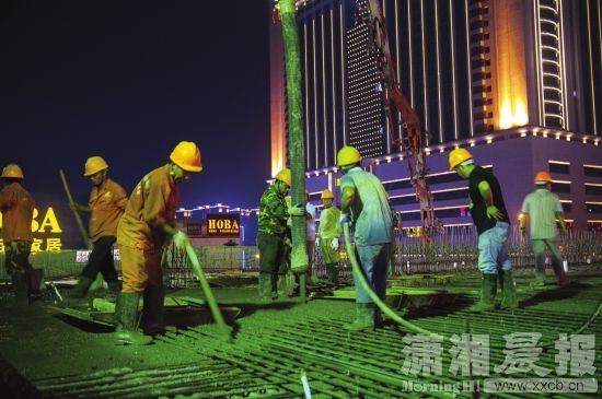 8月15日晚8時,長沙萬家麗廣場對面,一輛水泥罐車開進萬家麗路與荷花路交會處東南角。接著這輛罐車伸出高高的手臂,連續(xù)不斷地向萬家麗路高架輸送預(yù)拌混凝土,數(shù)十名工程技術(shù)人員在綁扎好鋼筋的最后一跨箱梁上嫻熟操作。上海城建市政集團萬家麗路快速化改造工程項目副總指揮、項目經(jīng)理傅建平透露,15日晚8時至16日上午10時,十名工程技術(shù)人員要完成120米橋面混凝土澆筑,到16日上午10時,萬家麗路快速化高架主線結(jié)構(gòu)全面貫通。今年國慶節(jié),作為湖南長沙乃至湖南首條按照快速化改造的高架橋,將實現(xiàn)全面竣工通車。