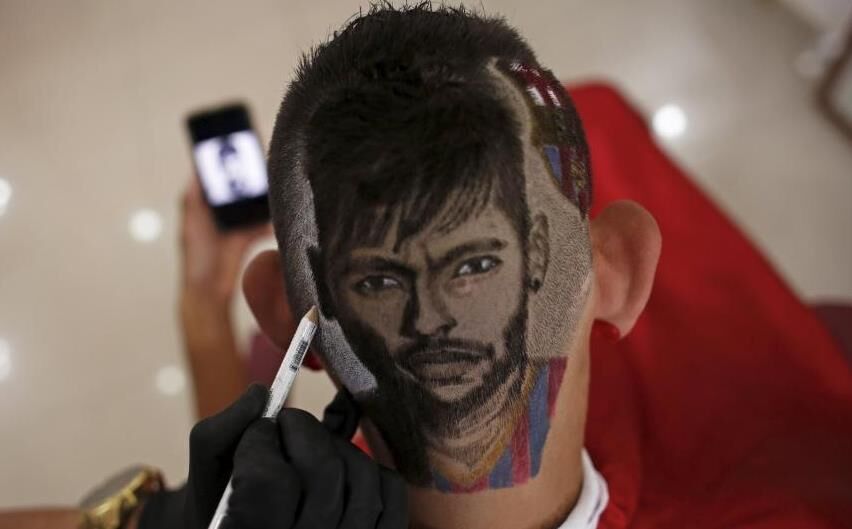 27歲的發(fā)型師Nariko在一名男性顧客的頭上創(chuàng)作了內(nèi)馬爾肖像發(fā)型,惟妙惟肖引圍觀。