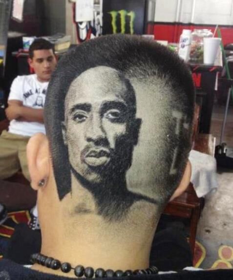 一名男性顧客的頭上創(chuàng)意發(fā)型。