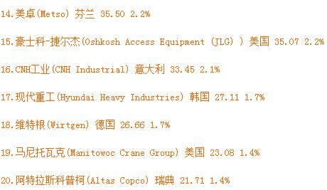 從表單中不難看出,卡特彼勒、小松的世界排名相對(duì)穩(wěn)定,仍然位居第一、第二名。其中卡特彼勒占總市場(chǎng)收入的18.1%。較之2015年,特雷克斯上升兩個(gè)名次,位居第三位。特雷克斯取代日立排名第三,日立建機(jī)排名第四,利勃海爾位列第五,沃爾沃排名第六。除此之外,斗山和杰西博分別上升兩個(gè)名次,擠進(jìn)前十名。
