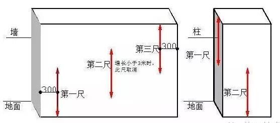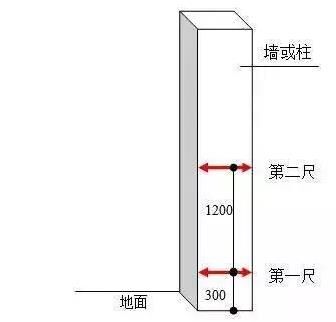 四、垂直度1、指標(biāo)說(shuō)明:反映層高范圍內(nèi)剪力墻、混凝土柱表面垂直的程度。2、測(cè)量工具:2米靠尺3、測(cè)量方法和數(shù)據(jù)記錄:(1)剪力墻:任取長(zhǎng)邊墻的一面作為1個(gè)實(shí)測(cè)區(qū)。累計(jì)實(shí)測(cè)實(shí)量不得少于5個(gè)實(shí)測(cè)區(qū)。(2)當(dāng)墻長(zhǎng)度小于3米時(shí),同一面墻距兩端頭豎向陰陽(yáng)角約30cm位置,分別按以下原則實(shí)測(cè)2次:一是靠尺頂端接觸到上部混凝土頂板位置時(shí)測(cè)1次垂直度,二是靠尺底端接觸到下部地面位置時(shí)測(cè)1次垂直度?;炷翂w洞口一側(cè)為垂直度必測(cè)部位。這2個(gè)實(shí)測(cè)值分別作為判斷該實(shí)測(cè)指標(biāo)合格率的2個(gè)計(jì)算點(diǎn)。(3)當(dāng)墻長(zhǎng)度大于3米時(shí),同一面墻距兩端頭豎向陰陽(yáng)角約30cm和墻中間位置,分別按以下原則實(shí)測(cè)3次:一是靠尺頂端接觸到上部混凝土頂板位置時(shí)測(cè)1次垂直度,二是靠尺底端接觸到下部地面位置時(shí)測(cè)1次垂直度,三是在墻長(zhǎng)度中間位置靠尺基本在高度方向居中時(shí)測(cè)1次垂直度?;炷翂w洞口一側(cè)為垂直度必測(cè)部位。這3個(gè)實(shí)測(cè)值分別作為判斷該實(shí)測(cè)指標(biāo)合格率的3個(gè)計(jì)算點(diǎn)。(4)混凝土柱:任選混凝土柱四面中的兩面,分別將靠尺頂端接觸到上部混凝土頂板和下部地面位時(shí)各測(cè)1次垂直度。這2個(gè)實(shí)測(cè)值分別作為判斷該實(shí)測(cè)指標(biāo)合格率的2個(gè)計(jì)算點(diǎn)。4、示例:
