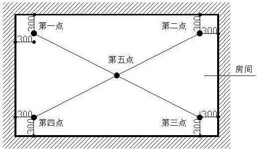 五、頂板水平度極差1、指標(biāo)說(shuō)明:考慮實(shí)際測(cè)量的可操作性,選取同一功能房間混凝土頂板內(nèi)四個(gè)角點(diǎn)和一個(gè)中點(diǎn)距離同一水平基準(zhǔn)線之間5個(gè)實(shí)測(cè)值的極差值,綜合反映同一房間混凝土頂板的平整程度。2、測(cè)量工具:激光掃平儀、具有足夠剛度的5米鋼卷尺(或2米靠尺、激光測(cè)距儀)3、測(cè)量方法和數(shù)據(jù)記錄:(1)同一功能房間混凝土頂板作為1個(gè)實(shí)測(cè)區(qū),累計(jì)實(shí)測(cè)實(shí)量不得少于3個(gè)實(shí)測(cè)區(qū)。(2)使用激光掃平儀,在實(shí)測(cè)板跨內(nèi)打出一條水平基準(zhǔn)線。同一實(shí)測(cè)區(qū)距頂板天花線約30cm處位置選取4個(gè)角點(diǎn),以及板跨幾何中心位(若板單側(cè)跨度較大可在中心部位增加1個(gè)測(cè)點(diǎn)),分別測(cè)量混凝土頂板與水平基準(zhǔn)線之間的5個(gè)垂直距離。以最低點(diǎn)為基準(zhǔn)點(diǎn),計(jì)算另外四點(diǎn)與最低點(diǎn)之間的偏差。最大偏差值≤15mm時(shí),5個(gè)偏差值(基準(zhǔn)點(diǎn)偏差值以0計(jì))的實(shí)際值作為判斷該實(shí)測(cè)指標(biāo)合格率的5個(gè)計(jì)算點(diǎn)。最大偏差值﹥15mm時(shí),5個(gè)偏差值均按最大偏差值計(jì),作為判斷該實(shí)測(cè)指標(biāo)合格率的5個(gè)計(jì)算點(diǎn)。4、示例: