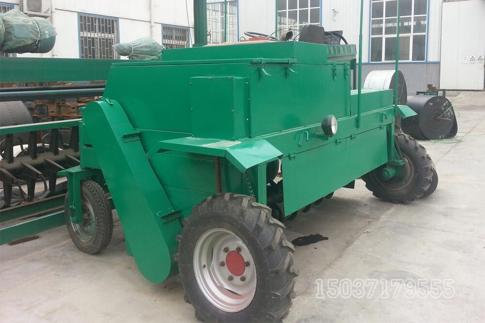 生物有機肥發(fā)酵翻堆車是生產(chǎn)生物有機肥專用成套設(shè)備中的主機,該機采取四輪行走設(shè)計,可前進、倒退、轉(zhuǎn)彎,由一人操控駕駛。行駛中整車騎跨在予先堆置的長條形肥基上,由機架下掛裝的旋轉(zhuǎn)刀軸對肥基原料實施翻拌、蓬松、移堆,車過之后篡成新的條形垛堆。即可在開闊場地,也可在車間大棚中實施作業(yè)。該機一大技術(shù)突破在于整合了物料發(fā)酵后期的破碎功能。隨著物料逐漸脫水,加裝破碎裝置的刀軸可有效地破碎肥料在發(fā)酵過程中形成的板塊,不僅省去了一臺粉碎機,更主要的大大提高了粉碎的效率,降低了成本,從根本上解決了生產(chǎn)量受粉碎機制約的問題。
