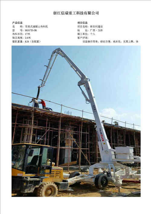 歸屬行業(yè):信瑞重工HG15B-3R移動式液壓混凝土布料機