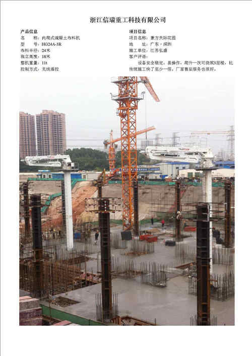 歸屬行業(yè):信瑞重工HG24A-3R樓面內(nèi)爬混凝土布料機(jī)