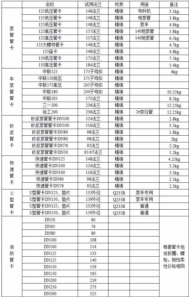 產(chǎn)品型號:125、150、180管卡