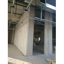 ④ 鋼結(jié)構(gòu)工程中相比夾芯彩鋼合板,防火性能優(yōu)勢更加明顯。本板材為無機材料加工,遇火不燃,100mm厚耐火極限即可達(dá)3.5小時以上。