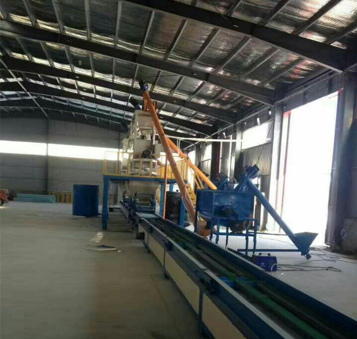 1、自動化程度高:整條生產(chǎn)線采用PLC電腦自動化控制,實現(xiàn)了自動上模板、自動涂脫模劑、自動配料、自動上漿、自動鋪布、自動攤平、自動分切、自動復(fù)壓、自動接板等自動化功能。
