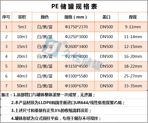 30立方含油廢水PE滾塑罐 佛山塑料儲(chǔ)罐 管口一體成型產(chǎn)品參數(shù):