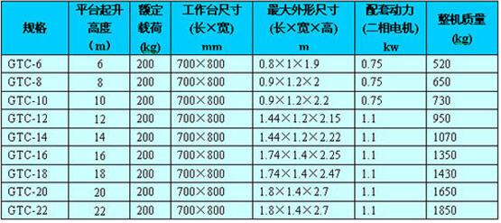 GTC套缸式液壓升降平臺(tái)技術(shù)參數(shù):